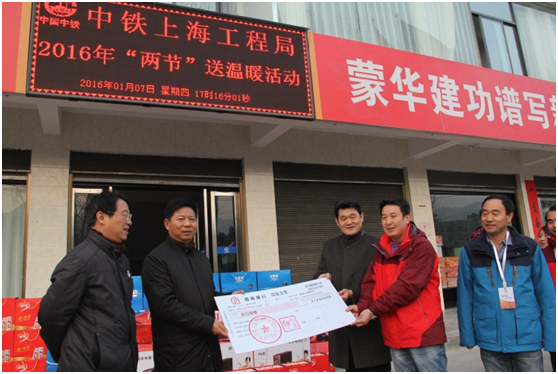 1月7日下午,集團公司黨委書記梁永興、工會主席王輝州一行在市政公司黨委書記陳建鳴的陪同下,來到蒙華鐵路16標項目部,看望慰問了堅守在一線的項目職工,并為大家送去了慰問金和慰問品。